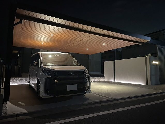 カーポート・車庫回りをライトアップして存在感のある外構に◎
