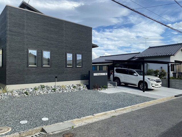 モノトーンで統一したスタイリッシュな新築外構